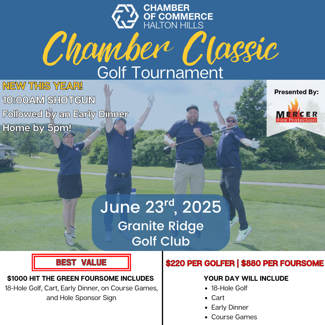 Join us for a day of golfing and networking at the 2025 Halton Hills Chamber of Commerce Golf Classic.