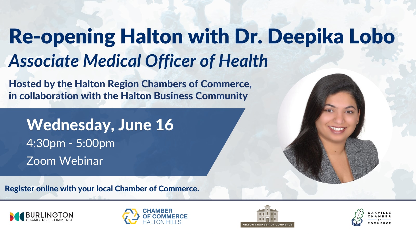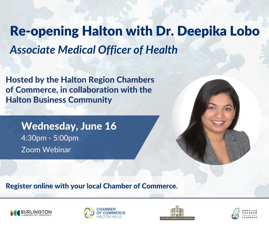 Join us for a conversation on re-opening Halton with Dr. Deepika Lobo, Associate Medical Officer of Health for the Region of Halton.