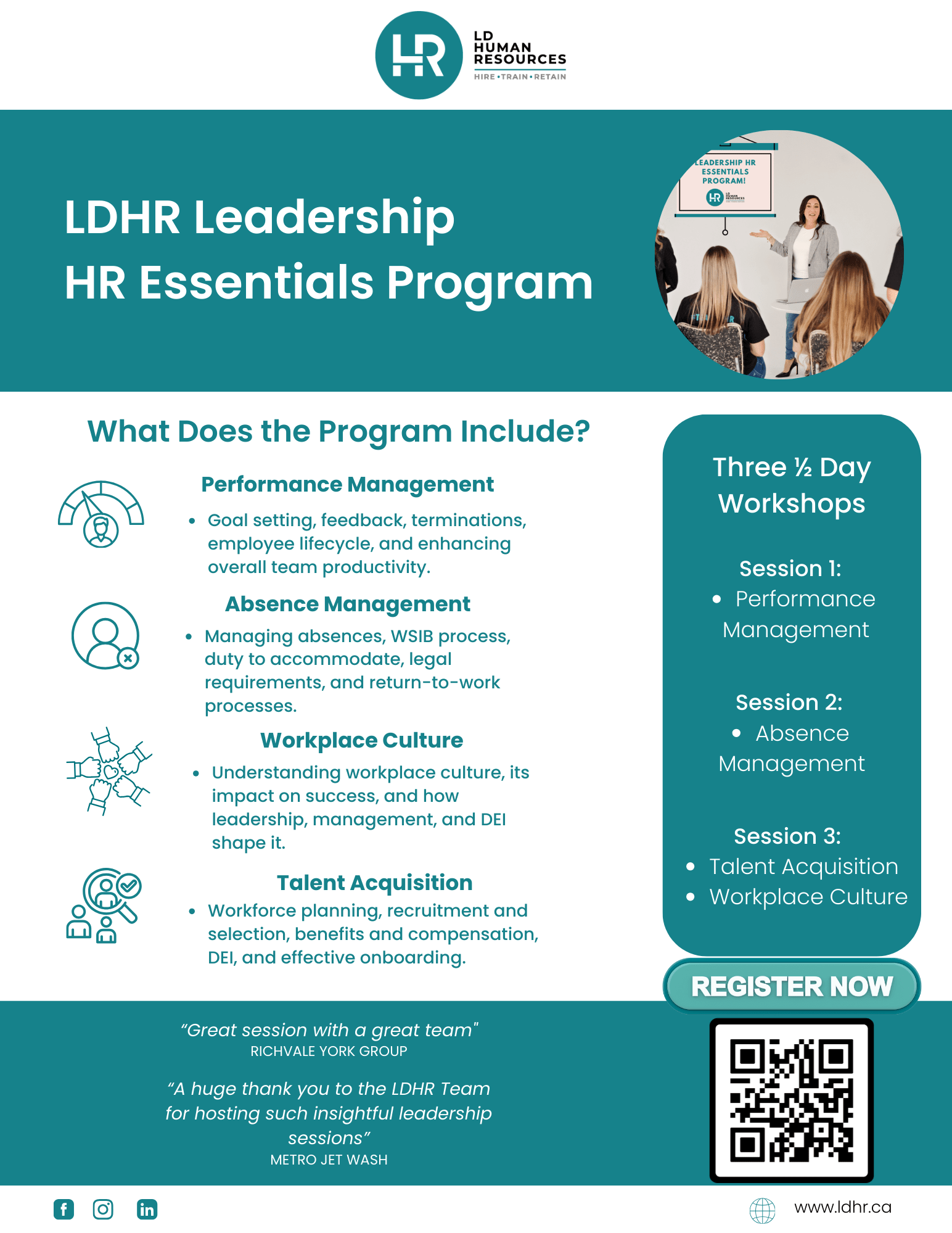 This interactive 3-half-day program includes Performance Management, Absence Management, Talent Acquisition, and Workplace Culture!